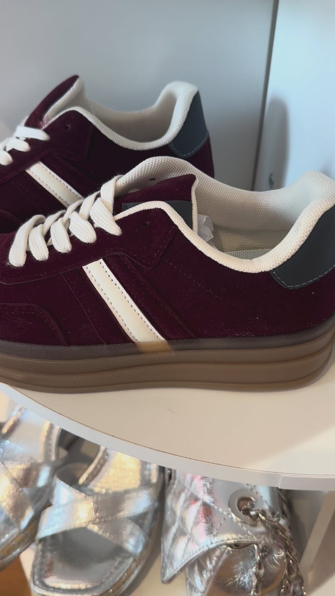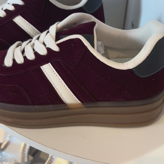 Stylish Berry coloured trainers with a brown sole (3cm) the perfect blend of style and comfort.