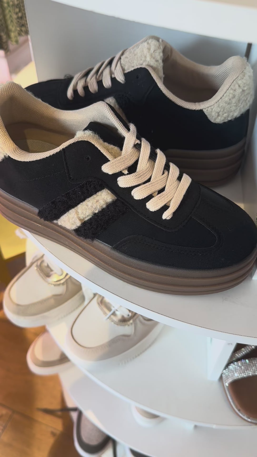 Stylish black trainers with a brown sole (3cm) the perfect blend of style and comfort.